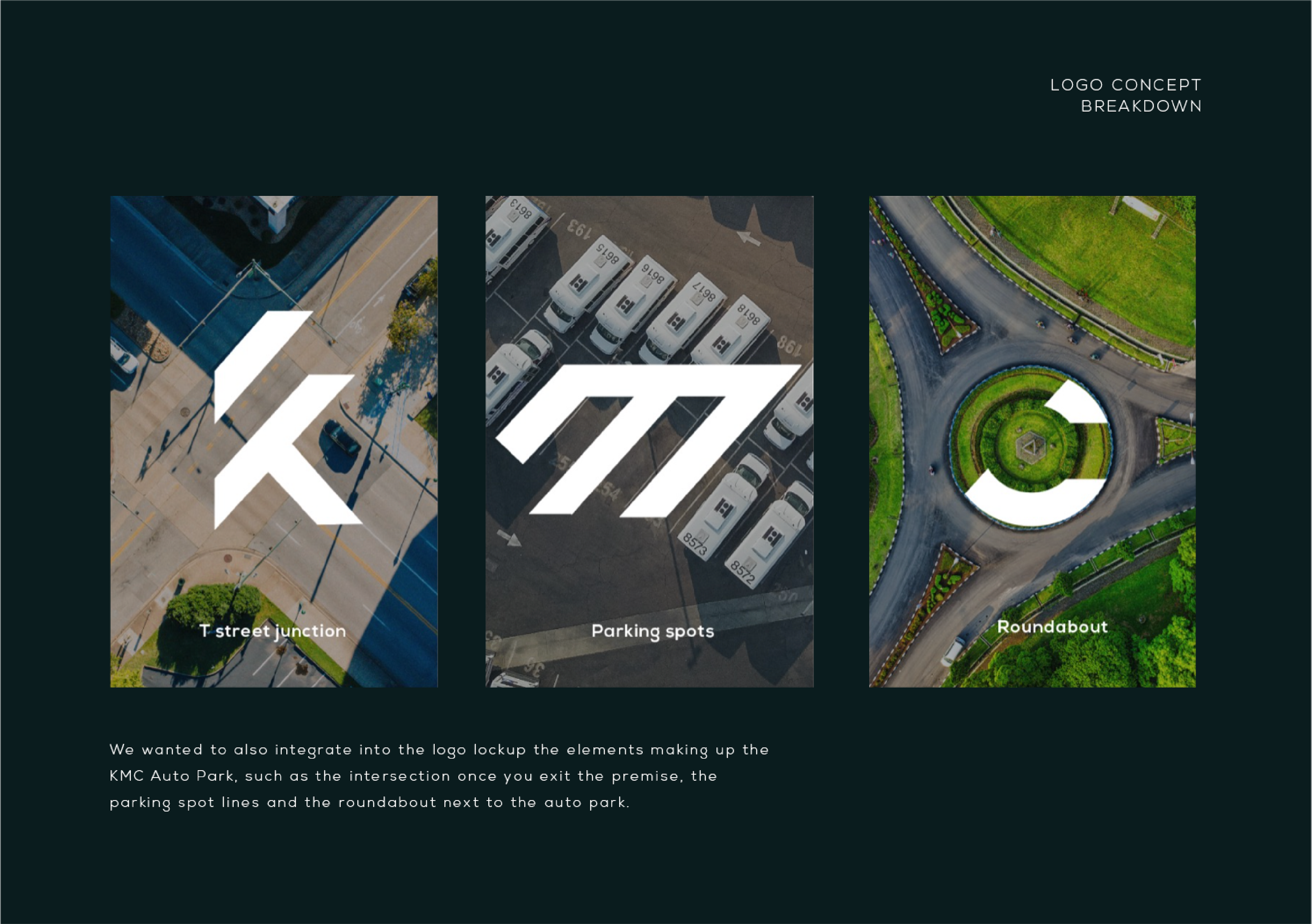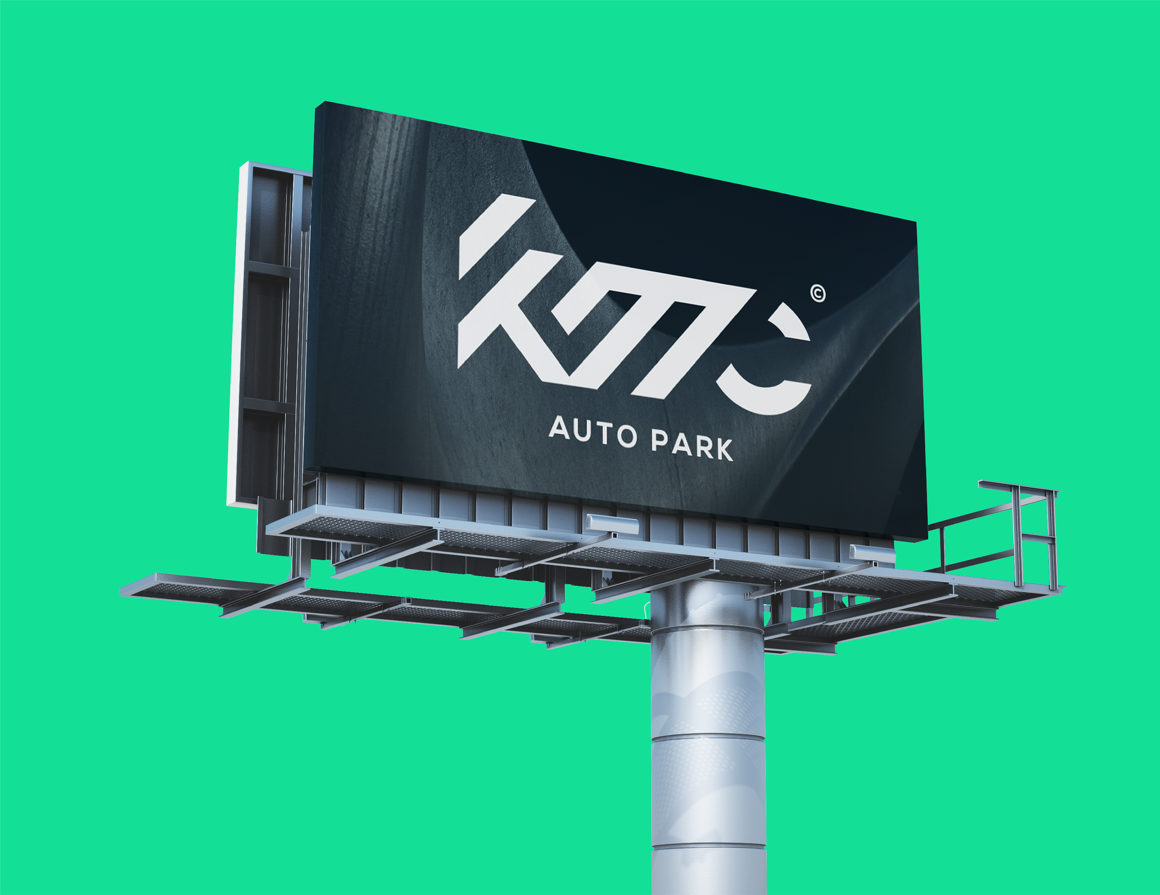Located on the A1 highway, west of Arad, KMC Innovative Auto Park has set out to create a unique experience for drivers who are in need of a quick stop to rest, eat and wash their vehicle. So one of the main criteria when creating the KMC monogram, besides being unique and fitting for the brand, was for it to be easily visible for drivers going down the A1.