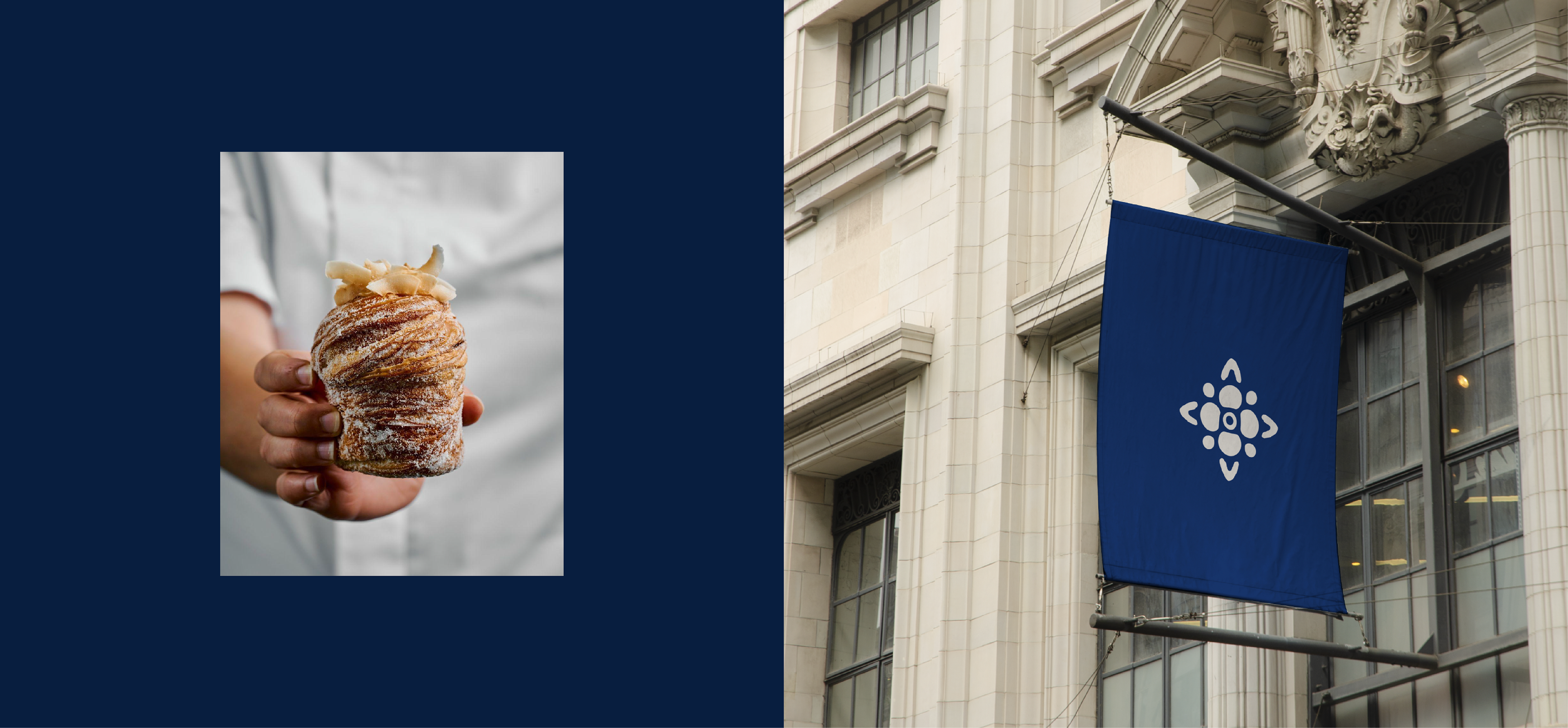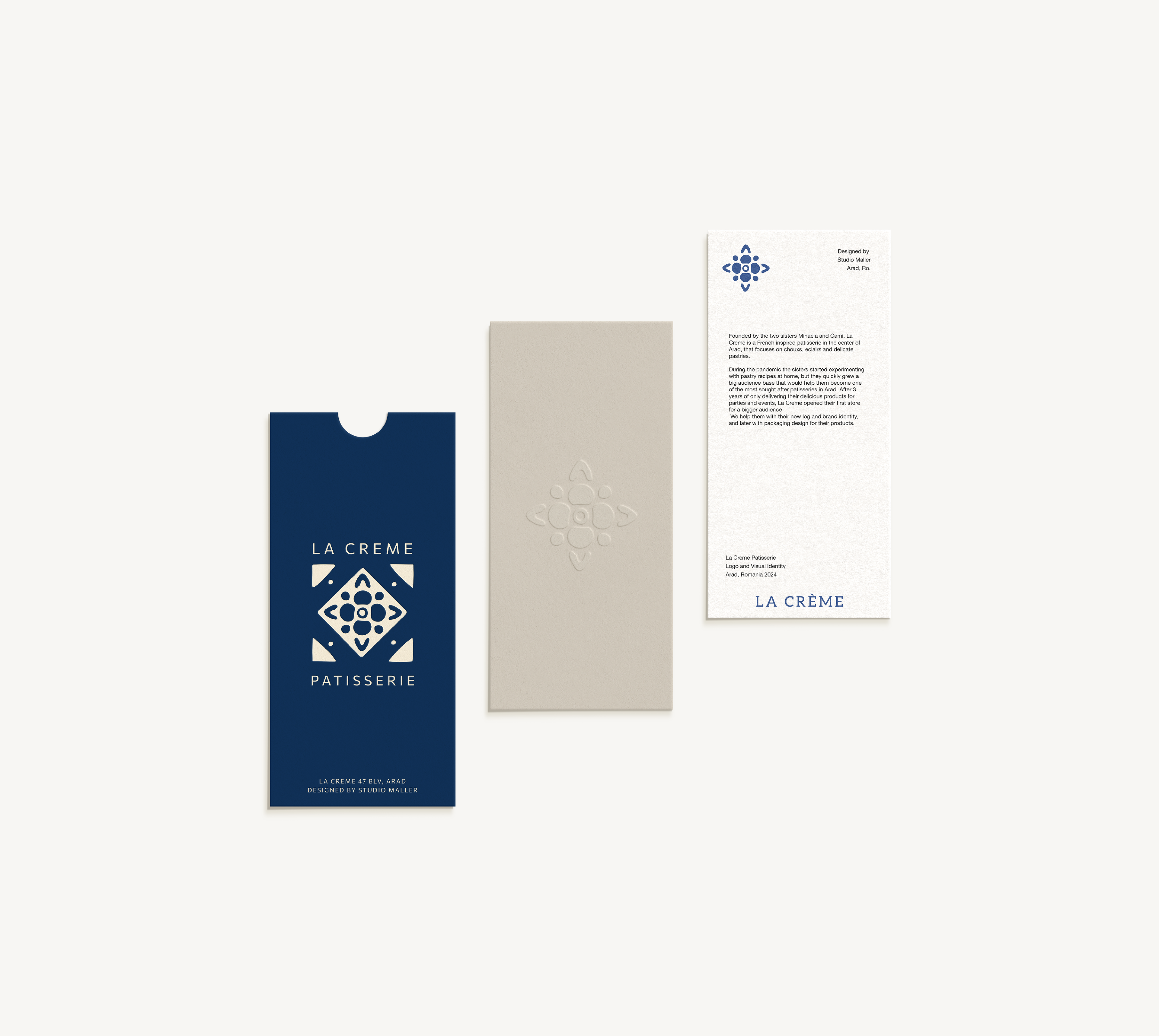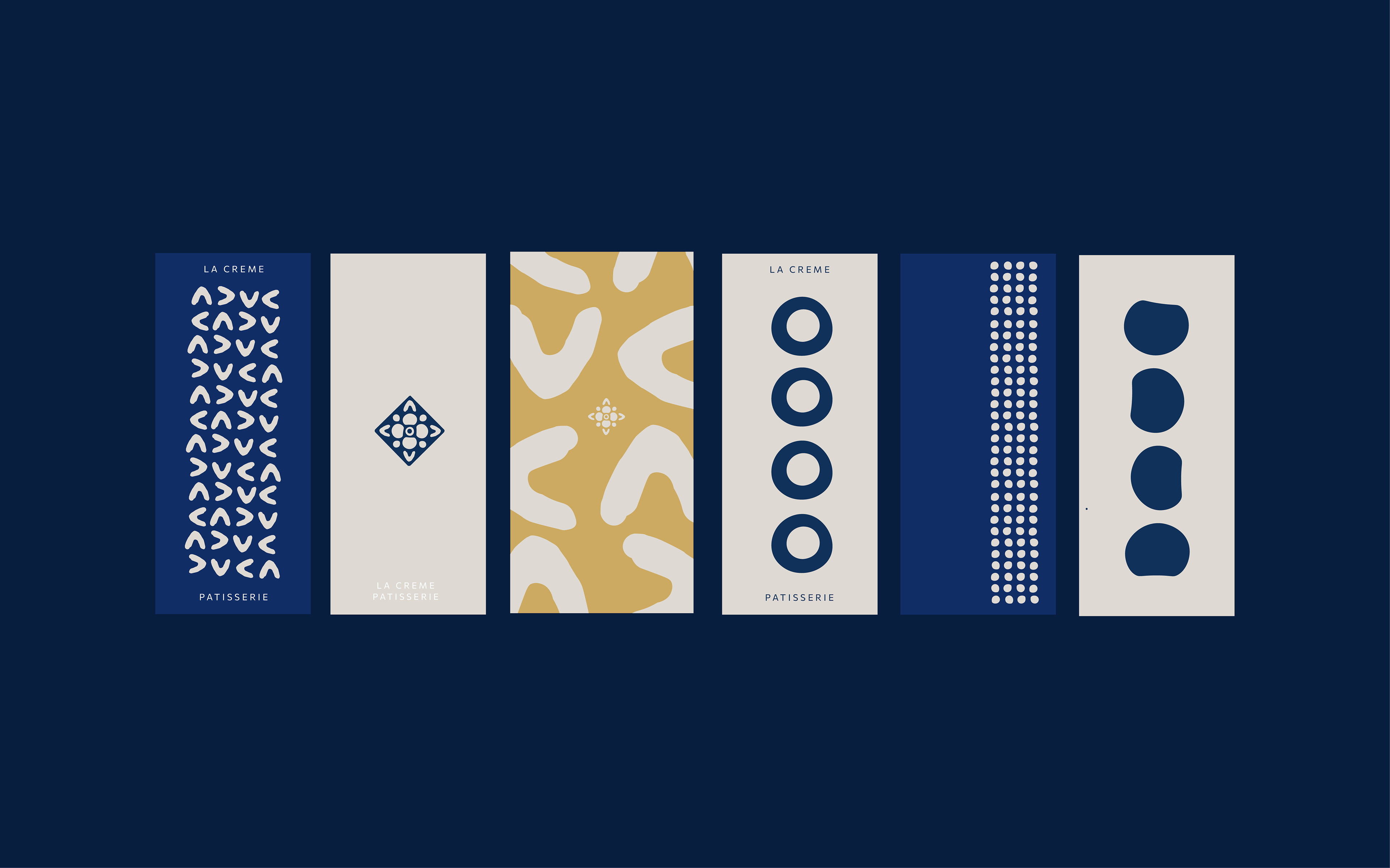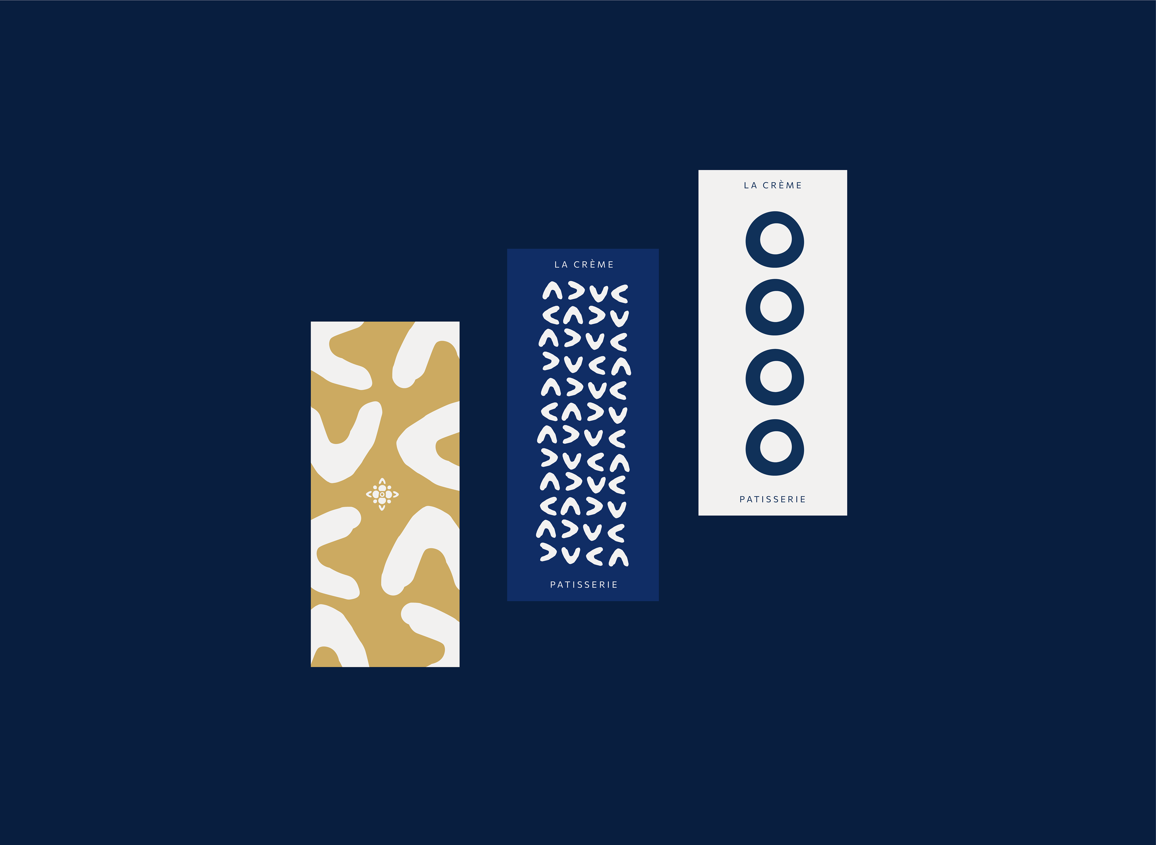 The visual identity of La Creme takes inspiration from the traditional aesthetic of French bakery but with the added twist of minimal graphics and fluid shapes that complement the artistry already present in the girls patisserie. We went for a classic light and dark navy blue as our accent color, cream base and gold as our highlights to further elevate the brand and offer it that chic Parisian look.